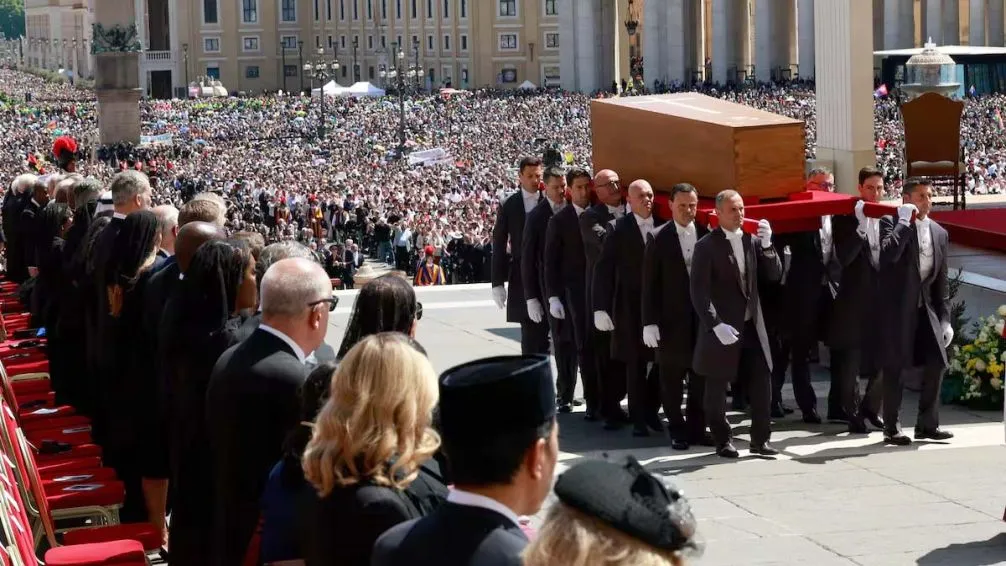Más de 250 mil fieles presenciaron el funeral del Papa Francisco en la Plaza de San Pedro. Además asistieron 50 jefes de Estado, 10 monarcas y más de 130 delegaciones extranjeras. Una vez finalizada la ceremonia, se trasladó el féretro en el Papamóvil hacia la basílica de Santa María la Mayor, lugar de su morada final.